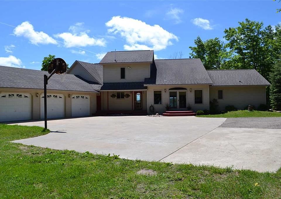 There is a lot to not only take in, but also to love about this beautiful home! Set overlooking Lake Charlevoix and the landscape is this fabulous 5 bedroom, 4 bath custom gem, packed with custom options almost everywhere you turn. From the log accents, the winding grand stairway, and on to the custom windows with those expansive views, you are sure to be pleased. The custom kitchen overlooks out onto the same grandeur that the living and master bedroom get to take advantage of. If you didn't need all that glorious space, the full walkout basement would make a perfect mother-in-law suite, or the great Air BnB setting too. There is enough here for every member of the family to love, and the large parcel offers a lot of outdoor fun, with the built in trampoline, to lots of room for company with their RV's, and next door you have a serene pond that comes alive with the voice of summer as the frogs will sing you to sleep! If that's not enough for you yet, you get a 3+ car attached garage, and there is a 32 x 32 pole building included that offers a heated haven from the ruckus of the home. You get all this, and a small tax bill, as you are in the township, but city is right across the paved road!