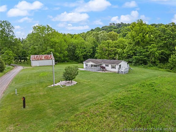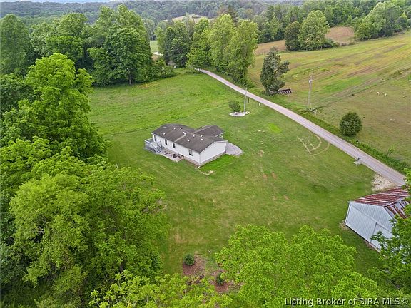 Nestled on a tranquil 14-acres, this charming country home offers a secluded paradise just a short drive from the beauty of Patoka Lake. 3 bedroom 2 bath home offer comfortable space ready for you to make your own. The private location at the end of a dead-end road ensures peace and serenity, while the sprawling acreage provides ample space for outdoor recreation and relaxation perfect for hunting. The home itself boasts three cozy bedrooms and two well-appointed bathrooms, providing comfortable living for a family or weekend retreat. A large 28x40 pole barn plus 14x40 lean to offers versatile storage options, making it ideal for housing boats, campers, or recreational vehicles. With its picturesque surroundings, private setting, and proximity to recreational opportunities, this country home is a true haven for those seeking a peaceful and fulfilling lifestyle amidst the beauty of nature while still close to grocery, pharmacy and restaurants.