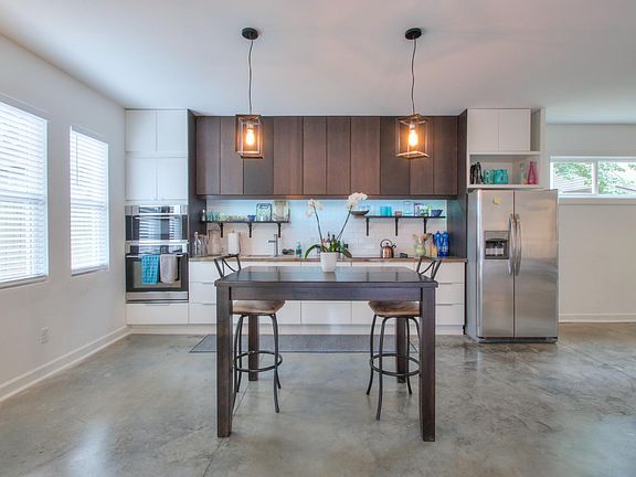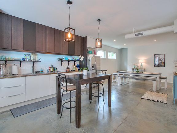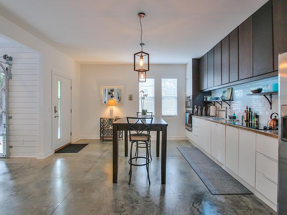 Modern industrial designer finishes make this home stand out. Huge open kitchen and master suite. Master bathroom includes double vanities, gorgeous tile shower, and tub. Overhead door downstairs opens to deck for more cool breezes. Massive rooftop deck and upstairs bonus room leads to bedrooms w/ jack n jill bath. Secluded home close to downtown.