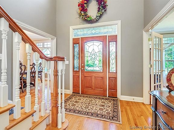Welcome to this beautiful 4BR/5 Bath home where quality construction is seen in every little detail of this spacious custom home. This bright and airy beauty is move-in ready with timeless traditional design. Backyard oasis w/wooded privacy of 1.34 acres, multiple covered porches, a fire pit, patio & fantastic in-ground swimming pool. Cavernous 3 car garage measures almost 1000 sq.ft. Laundry room on 2nd floor with 4 bedrooms demonstrate the most thoughtful planning of space; there are two suites & the other bedrooms each have private sinks and a shared full bath. The owner's suite has it all including a sitting room, built-in wardrobe, & 2 walk-in closets. The main floor & the lower level offer an Entertainer's delight with wet-bar, wine cellar, 2nd fireplace & two different zones of entertainment. Unfinished 795 sq.ft. offers safe room and storage galore. Award winning Floyd County Schools. Marvelous home from top to bottom, come see this perfectly nestled home for yourself.
