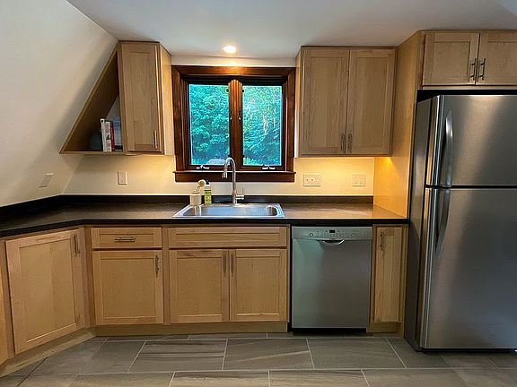 Freshly updated A-frame 2 bedroom on private wooded 5 acres with easy access to Burlington, St Albans and Smugglers Notch Ski resort.