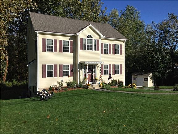 Pride of ownership shows in this immaculate, 7 year young, 3 bed, 2.5 bath Colonial. Upon stepping through the front entrance you will be greeted by a spacious open floor plan with beautiful hardwood floors. The dining room flows nicely into the kitchen which has granite countertops, a center island, tile backsplash, soft close drawers, and stainless steel appliances. Sliders off the kitchen to the rear deck make entertaining a breeze. The 27'x13' living room has ample windows for perfect natural lighting and a gorgeous gas fireplace. There is also a half bathroom on this level for your guests. The second floor boasts 3 bedrooms, a full bathroom and a private office space with hardwood floors throughout. Laundry is conveniently located on this level. The 14'x18' master bedroom has a large walk-in closet and its own full bathroom with double vanity sinks encased in granite. Heading to the 3rd floor are stairs to a walk up bonus attic space. This enormous room is currently used for storage but has expansion possibilities for 2 additional bedrooms. Moving outside, the yard is beautifully landscaped and has a matching storage shed. This home is vinyl sided with gutter guards and also a 2 car garage, central air, gas heat, public water and sewer. Great Road is an ideal location minutes to RT 146, shopping, Lincoln Woods, golf, Twin River and in Lincoln's highly rated school system. Call today for a private showing!