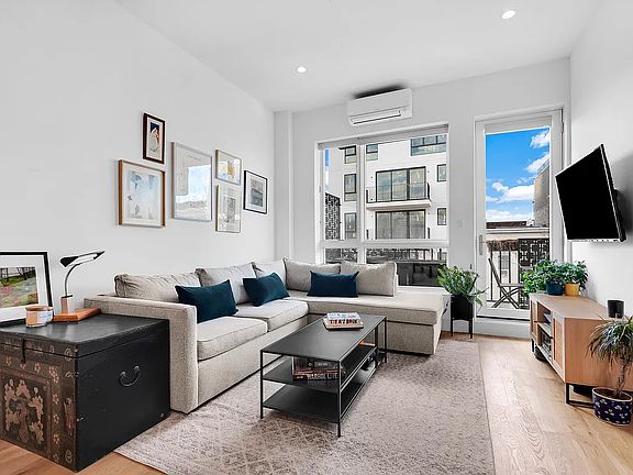 1 BEDROOM WITH HOME OFFICE, 2 BATHROOMS AND PRIVATE BASEMENT STORAGE Welcome to 1009 Hancock Street. Residence 3R is an open, airy and spacious 1 bedroom plus home office with 1.5 bathrooms, a balcony and washer/dryer included. As soon as you enter you are welcomed by crisp white oak plank flooring, leading you into an open space with soaring 10' ceilings and distinct living, dining and kitchen quarters. The kitchen overlooks the sprawling length of the apartment and features a full Bosch appliance package, Quartz countertops & island with seating, paired with elegant grey tone cabinetry with an ample amount of pantry space. The rest of your entertainment area is loft-like featuring a gracious living room area with balcony access and custom bookshelves which lead you to a completely separated home office, accessed through custom French doors. The primary suite has oversized windows and comfortably fits your bedroom setup for a quaint atmosphere, connected to the primary spa-like bathroom detailed with sleek grey tiled accents. Additional features include custom Graber window treatments, ductless Mitsubishi split heating/cooling systems, washer/dryer, extra half bath, and a large private storage room in the basement. 1009 Hancock Street is a recently developed boutique condominium sitting on a quiet tree-lined street in vibrant Bushwick and is conveniently located nearby neighborhood parks, cafes, bars, restaurants and the Halsey J train just one street away. This is an amazing opportunity for those looking for their one bedroom and home office needs.