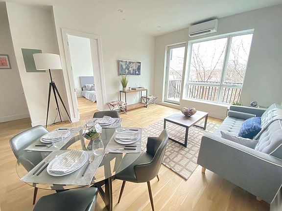 **Apartment 4F is a 665 sq. ft. one (1) bedroom, one (1) bath unit, featuring soaring ceilings, a full balcony overlooking tree lined Hancock St. and a **private roof deck** (approximately 700 sq. ft.)** 1009 Hancock Street is a new boutique Condo Development 2020 ! Consisting of one (1BD) and two bedroom (2BD) homes. Located just one block from the Halsey Street stop of the J train in burgeoning Bushwick. Efficient floor plans that maximize every square foot are a hallmark of the apartments at 1009 Hancock. * Private roof top Laundry in unit * Balcony Storage space included very high ceiling and large windows * Each home in this ground-up new construction has been thoughtfully imagined and designed with today's buyer in mind. Bathrooms were thoughtfully designed with the unique spa culture seen in Japan as inspiration. Finished with tiles in warm earth tones and serene accents as well as Brazilian-style rain showers. The kitchens feature a Bosch appliance package; which includes a dishwasher and microwave, quartz counters and elegant wood cabinets providing plenty of kitchen storage. All residences are equipped with Mitsubishi ductless mini-split Systems for quiet, energy-efficient heating and cooling, and a washer and dryer in each unit as well as private storage space in the basement. Projected common charges: $286.49 Projected taxes : $503.59 This is not an offering. The complete offering terms are in an offering plan available from sponsor.