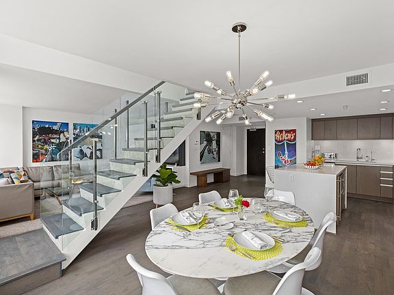 WELCOME HOME to this luxury AIR CONDITIONED PENTHOUSE in the heart of the city. This penthouse residence has a spectacular 742 sf rooftop terrace just to top it off.Walking into this space you will feel the sense of openness with particular focus to detail in the numerous custom upgrades. The open concept kitchen features Bosch appliances, including wine fridge. The living room/dining rooms have custom built in's with motorized blinds. There is also a large pantry for all the extras. Moving up to the second level, both bedrooms are spacious with plenty of closet space. Finally the private patio. This massive space has all the space you need to entertain and relax. 2 side by side parking, 3 lockers. Building has concierge, gym, amenities spaces. Truly a pleasure to show.