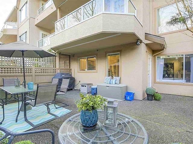 CORNER GROUND FLOOR UNIT at Huntington West! Beautiful window views in the kitchen and eating area overlooking a MASSIVE 400 sqft PATIO which is excellent for kids, pets or entertaining. Updated in previous years with light fixtures, newer bathrooms, SS appliances and laminate floors throughout. This home also features a cozy gas fireplace enough to heat up the entire living area during those colder months! Quiet building with new roof and air make-up 2014. Sorry, NO RENTALS. Best New Westminster location, across from Moody Park, short walk to the library, all levels of schools, Royal Centre mall and NW Skytrain Station.