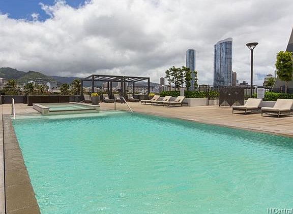 Pacifica Honolulu offers great amenities such as BBQ area, pool, theaters, exercise room. Conveniently located near restaurants, shops and the beach. This unit is on the cool side with gorgeous mountain and city views. Open house 2/11/2018, 2-5PM.