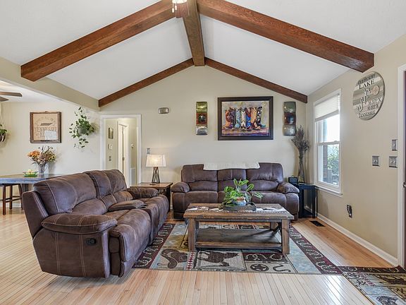 The first thing you notice when stepping into this well-built brick home is the Open feel and great light. Cathedral ceiling in Great room*Open to dining area with Patio door to deck & Private Fenced backyard*Hardwood floors throughout main level except secondary bedrooms*Tile in remaining areas. Lakeview Living and Lake access, Well maintained house. Large .87 acre tract, Half mile from Docks