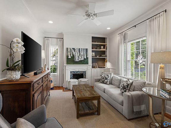Blossomwood Charmer! Beautifully renovated with 9' ceilings, refinished hardwood floors, Isolated Primary Suite & much more! Great updates since 2019 including Kitchen renovations with carrara counters & Kitchen Aid appliances, New paint, Lots of new light fixtures, & new ROOF! Home has an alley access back entry car garage with workshop, large front porch, pocket doors between living/dining room. Separate Laundry room with door to back deck. Lots of great built-ins in study, bedrooms, and dining room. 283 sf H/C detached space - perfect for Home Office/Flex Space! Head to Downtown Huntsville for a quick bite or hit a Landtrust Trail at the base of Monte Sano Mountain.