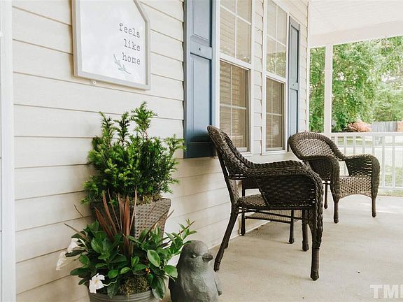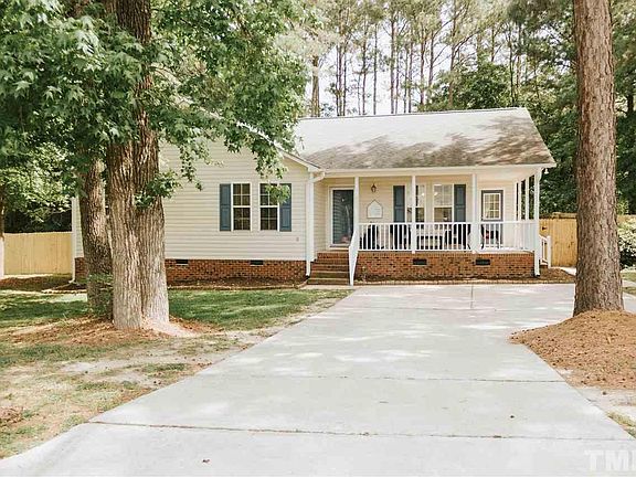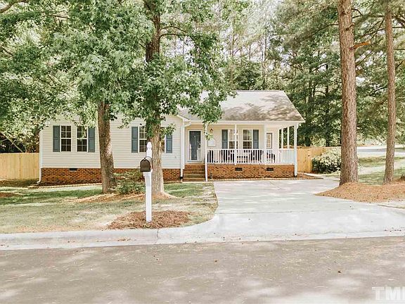 USDA Eligible, Cul-de-sac charmer w/ wrap around covered porch on corner lot! This cozy 3bdr ranch features an open living room w/ vaulted ceilings, new carpet in bdrms, laminate floors and a wood burning fireplace. Freshly painted kitchen has tons of cabinets with roll out shelving in pantry and bright eat-in breakfast/dining nook. Backyard backs to wooded buffer for privacy and large deck perfect-for grilling! Convenient location close to highways and shopping. Hurry...this will sell quick!