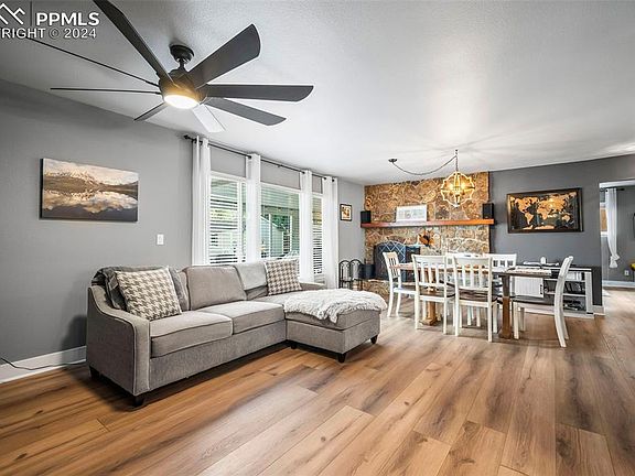 Charming & meticulously cared for Rancher in Skyway ready to move into today and boasts over one hundred thousand dollars worth of upgrades over the past 3 years! You'll have a huge lawn on over a quarter acre with a chicken coop, multiple sheds/workshops, huge patio and fire pit for outdoor living. Stunning views of the mountains and very near to multiple parks and hiking trails including Bear Creek, North Cheyenne Canyon, Colorado Springs Zoo, Seven Falls, Red Rocks, and more. The upgrades include solar that is paid for, remodeled bathrooms, fixtures, kitchen appliances, flooring and much more. A brand new 2 car garage and driveway was just put in along with a well cared for front and back lawn. There are 4 bedrooms and a large office and most of the flooring is Luxury Vinyl Plank! The Solar is directly connected to the grid to lower your bills. You won't want to miss this beautifully maintained home in this beautiful area of our town!