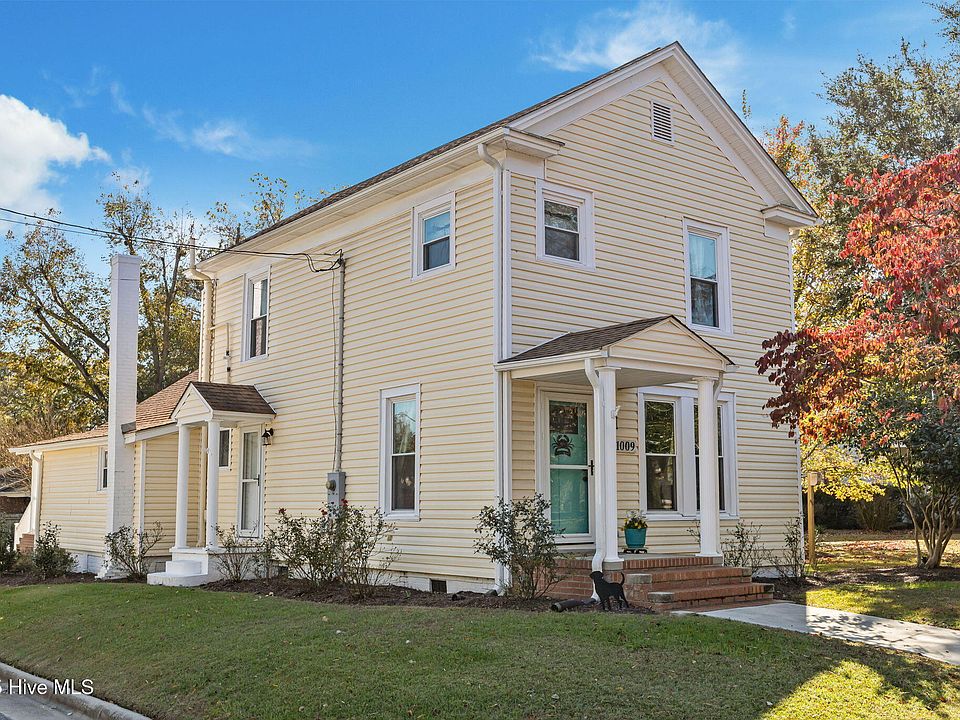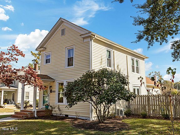 Step back into time with this beautiful, preserved vintage two-story home, perfectly blending classic charm and modern updates. Nestled on a spacious corner lot with manicured landscaping that bursts with curb appeal, this 3-bedroom, 2.5-bathroom gem offers the ideal mix of comfort, style and outdoor living. On the main floor, discover the serene retreat master suite that offers an updated en-suite master bath. New double cabinet-style vanity with sleek brushed brass hardware, pristine walk-in shower doors and fixtures. Original hardwood floors flow seamlessly throughout, complemented by durable LVP in key areas for effortless maintenance. The heart of the home is the inviting kitchen, boasting leather-finish granite countertops, open shelving, and ample cabinetry for storage. Stainless Steel appliances make meal prep a breeze. The adjacent dining room sets the stage for memorable gatherings. Newly installed French doors open directly to the brand-new concrete patio, creating a seamless indoor-outdoor flow - perfect for dining or relaxing in the fully fenced in side yard. A large, 10' x 16' shed provides extra storage for tools, hobbies, etc. The driveway leads to a new 28' x 28' x 11'8'' metal carport with side lean-to to protect those valuable vehicles. Upstairs, two generously sized bedrooms offer peaceful havens, each equipped with new split-units for personalized climate control. They share a beautiful guest bath with free standing tub with shower combo. With its corner lot location, lush landscaping, and thoughtful renovations, this home is move-in ready and brimming with character. A few blocks from historic downtown offering dining, entertainment, shopping or just a nice leisurely stroll on the waterfront. Schedule now!!