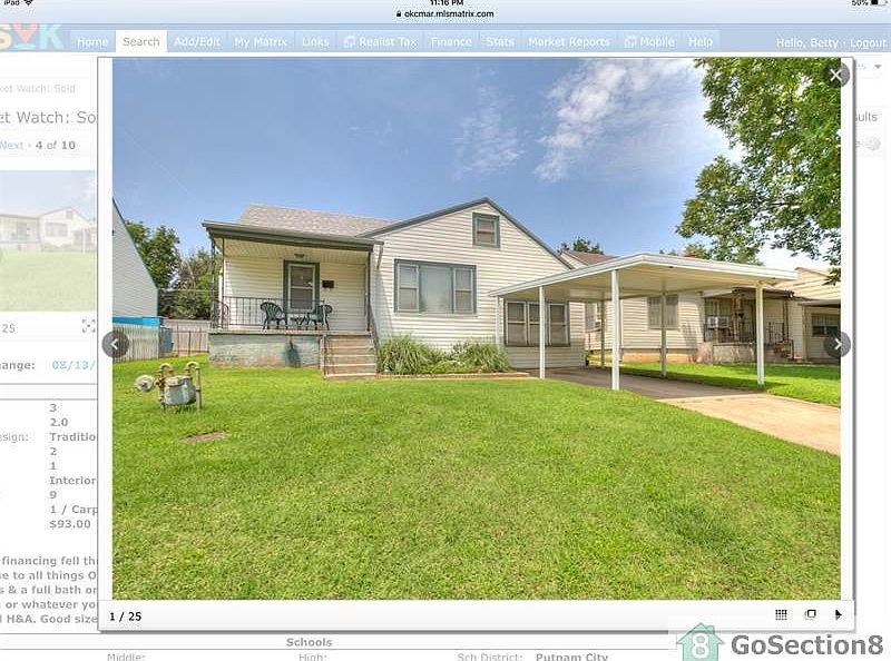 Great 3 Bedroom, 2 Baths Large living area open to spacious dining. Kitchen has lots of cabinet space. There are 3 beds, 2 baths. . There is also a bonus room upstairs. Large backyard has 2 storage sheds. Central heat & air, stove, carport. $35 application fee. 405-720-6421 For more properties like this visit GoSection8.com.