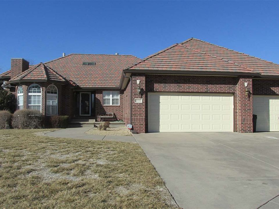 Beautiful all brick ranch style home. 3 car garage, main floor family room, main floor utility room. Tile roof. Irrigation well and sprinklers. Gorgeous kitchen with lots of built ins, desk, eating bar, granite countertops, and appliances. 2 fireplaces.