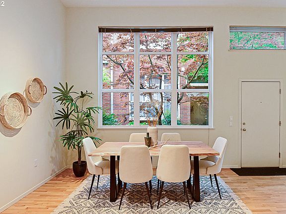 Heart of the Pearl district! Fantastic layout w/stunning huge wall of windows, soaring ceilings, hardwood floors. Gated parking entrance to attached garage. This private, quiet, ground floor unit is filled with natural light. Open floor plan, perfect for entertaining. Wonderful small community with low monthly HOA, gorgeous central courtyard. Step out your door to shops, restaurants, parks and all that city living has to offer!