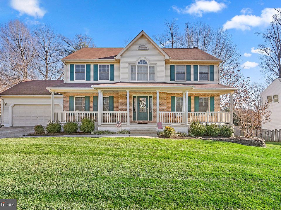 This beautiful colonial style home with a two car attached garage and an end to end, covered front porch with brick accent, is nestled in the Courts of Four Seasons subdivision of Odenton. Recent updates include a brand new kitchen with custom cabinetry and inserts. The main level boasts hardwood flooring that was just refinished. A large formal dining room and formal living room are open to the 2 story entry foyer. Off the kitchen is a breakfast room with space for barstools to the kitchen and sliding door walk out to the deck. The family room with brick hearth wood burning fireplace, a powder room and laundry room with pantry and garage access complete the main level. The upper level offers the primary suite with viaulted ceilings, a huge private bathroom with soaking tub, shower, dual sink vanity and walk in closet, plus a smaller secondary closet. There is a wide hallway with entry to all 4 bedrooms and the full, shared bathroom. Two of the three secondary bedrooms are generously sized. The lower level is fully finished and offers lots of space to use for recreation, office or guests. There is a second powder room, a storage room, and the recreation room has sliding doors that walk out to the paver patio, and the fully fenced back yard. This is a must-see close to Fort Meade and many commuting routes to Annapolis, Baltimore and D.C.!