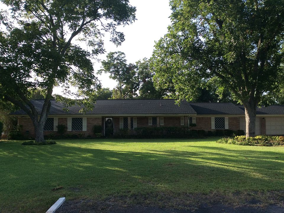 Very well maintained 4 bedroom, 2 bath home on huge tree covered lot just under 1 acre. Features include new roof after Hurricane Harvey, granite kitchen countertops, stainless steel appliances, built in bookcases & tons of storage, whirlpool tub, large utility room with sink & built in desk, wood & tile flooring (no carpet) & a gorgeous back yard with pretty landscaping and a cute "farmhouse look" greenhouse. Part of the family room area was added on several years ago & the fireplace was added at that time. There are covered and uncovered patio areas, perfect for entertaining family & friends. There is a sprinkler system in front & back yard for easy maintenance. Front yard sprinkler uses city water, backyard sprinkler is from a water well. Stainless Steel fridge will convey.