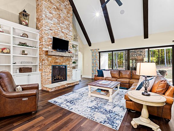 Designed for Relaxation, Reflection and Escape from the hustle of daily life, your dream home is just north of Falls Lake. Situated on an expansive 1.84-acre lot, this custom-built home offers privacy and natural beauty in a desirable location. Perfect for outdoor adventurers, the property features an RV or boat garage (with 14-ft. door and 42-ft. depth), providing convenient storage for your recreational vehicles. For car enthusiasts, there is an attached two-car garage in addition to the detached RV garage which has space for additional cars and a heated and cooled workshop. The home itself, built by ICG Homes in 2018, welcomes you with an impressive vaulted and beamed Great Room adorned with a rustic brick accent wall and gas log fireplace. The heart of the home lies in the kitchen which is sure to impress the chef in your family. High-end stainless appliances, a large center island with farm sink, a cleverly designed, hidden walk-in pantry and sunny dining area are just a few of the culinary features that make this kitchen a cook's delight. Just off the Great Room, the covered, stone porch with wood-burning fireplace is the perfect spot to relax on cool fall evenings. Another screened porch and covered porch off the kitchen allow space for grilling, dining and entertaining. With all four bedrooms and laundry on the main level, the floorplan lives like a ranch, yet upstairs a Media Room, Exercise Room, Bonus Room with half bath and large, conditioned storage room await. Over 1,100 square feet of unfinished space on the second level is great for storage or future expansion possibilities. The craftsmanship and detail create a thoughtfully designed home with upgrades for comfortable and easy living. Just to name a few of the specialty systems and features...500-gallon Aqua Boost System for superior water quality, whole house generator, irrigation system complete with a second well (2022) specifically for yard watering, a Gutter Guard protection system, a tankless water heater (2022), a Sonos music system with speakers and even an electric dog fence. Don't miss the chance to call this peaceful retreat home!