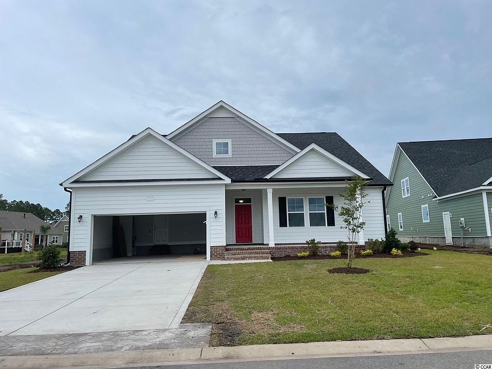 The Calabash plan has low country style with cement fiber board exteriors & raised slab brick veneer foundation. Some standards included in this home are large front and rear covered porches, laminate 5" flooring throughout all 1st floor common areas, over sized tile walk-in master shower. Natural gas water heater, gas heat. Maple 36" - 42" staggered height cabinets with crown. Granite kitchen counter tops, counter height kitchen island peninsula with granite overhang. Tray ceiling in master bedroom. Stainless appliances, The new Chrome lighting & plumbing package. Comfort height vanities in all baths. Fully finished garage with side access door. Upgraded trim package including 7.25" baseboards throughout, cased windows & openings, crown in the foyer and dining room. Paver apron driveways, Fully landscaped, sodded & irrigated yard with gutters around entire home. Eco select energy program with 2X6 exterior walls, R19 insulation, radiant barrier and trane 16 seer HVAC unit, and comfort guarantee, TAEXX Built-in pest control system. Sentricon termite system. 2 - 10 warranty. Living in Indigo Bay you will be enthralled by sites & sounds of Nature. Centered around a 56-acre Lake is the backdrop to where you can enjoy kayaking, canoeing, paddle boating, fishing. You will also enjoy walking through the neighborhood on our spacious 9' wide Recreation path. Our 2-story Clubhouse Amenity Center with front & rear wrap around covered & screened porches, Community pool & fitness center. We even have a dog park for your fur babies. This Master Planned, gated, natural gas community will be where you want to come home to. “Photos are of a similar Calabash home. (Home and community information, including pricing, included features, terms, availability and amenities, are subject to change prior to sale at any time without notice or obligation. Square footage's are approximate. Pictures, photographs, colors, features, and sizes are for illustration purposes only and will vary from the homes as built.)