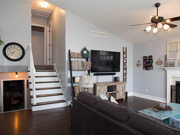 This 4 bedroom 2 bath home offers spacious living room with vaulted ceilings, wood burning fireplace, newer flooring and guest closet. The updated kitchen is sizeable, newer stainless steel appliances, soft close drawers,ceramic tile flooring, vaulted ceilings and walks out to the fenced back yard, with weather/stained treated privacy fence. Take a few steps up and you will find 3 bedrooms and a hall bathroom. Take a few steps down and you will find a sizeable bedroom suite with washer/dryer area, concrete floors and an egress window. (seller chose to finish lower level and put master bedroom suite below. (optional). 2 car garage, gutter guards all for 185K. Don't miss out