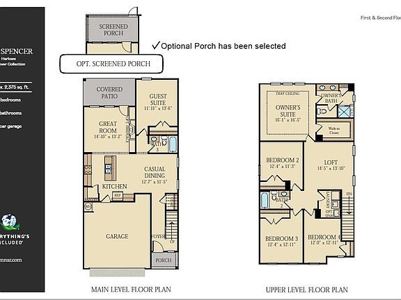 The Spencer by Lennar in Harlowe Point - our newest Durham neighborhood offering single family homes. The Spencer on home-site 115 offers 5 bedrooms and 3 full baths - includes 1st floor guest room. Buy now for Estimated December delivery. This home will be well appointed with white kitchen cabinets, quartz kitchen counters, tile back splash, stainless appliances. Lux vinyl plank covers the 1st floor - including the 1st floor bedroom. Screened porch is off the living area and will overlook a landscaped rear yard. Open plan layout 1st floor. 2nd floor loft could be a 2nd living area. 3 secondary bedrooms share a hall bath. The primary suite is on the rear of the home w/ walk in closet. Primary bath with dual vanity, water closet, linen storage, and spacious shower.