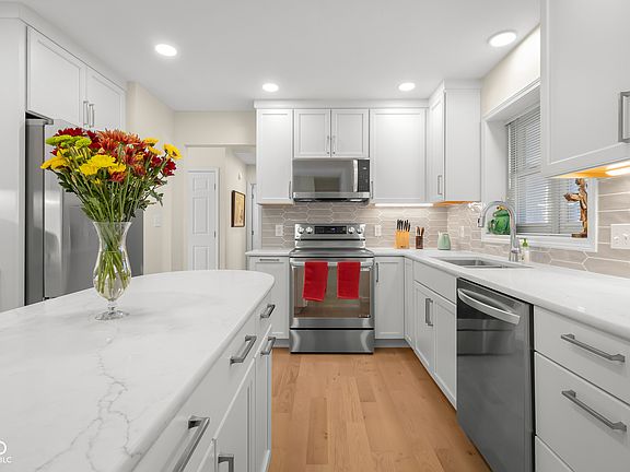 This beautifully updated one-owner home in the desirable Parkside area boasts a range of modern features and spacious living areas. The inviting living room features a vaulted ceiling, large windows that fill the space with natural light, a cozy fireplace, and elegant new solid hardwood flooring. The main floor master bedroom offers a tranquil retreat with its own vaulted ceiling, fresh paint, and plush new carpet. The attached master bath is a highlight, featuring a new double bowl vanity with a sleek quartz top and a stylish new shower. The completely remodeled kitchen is a chef's dream, showcasing crisp white cabinets, quartz countertops, and all-new appliances, complemented by new hardwood flooring. Adjacent to the kitchen is a bright breakfast room and a formal dining room, both with the same stunning hardwood. A sunroom off the kitchen provides additional living space that can serve as a family room or home office, also featuring new hardwood flooring. Upstairs, you'll find three generously sized bedrooms, all with new carpet and paint, along with a hall bathroom that boasts new quartz and tile finishes. The expansive basement offers a large room perfect for a family room or recreational activities, adding even more versatility to the home. Ping Pong table and treadmill are negotiable. Energy efficiency is enhanced with a tankless water heater and solar panels, resulting in significantly reduced electric bills through a program with Duke Energy. Seller pays less than $12 month year round.