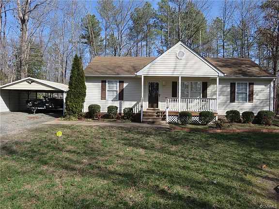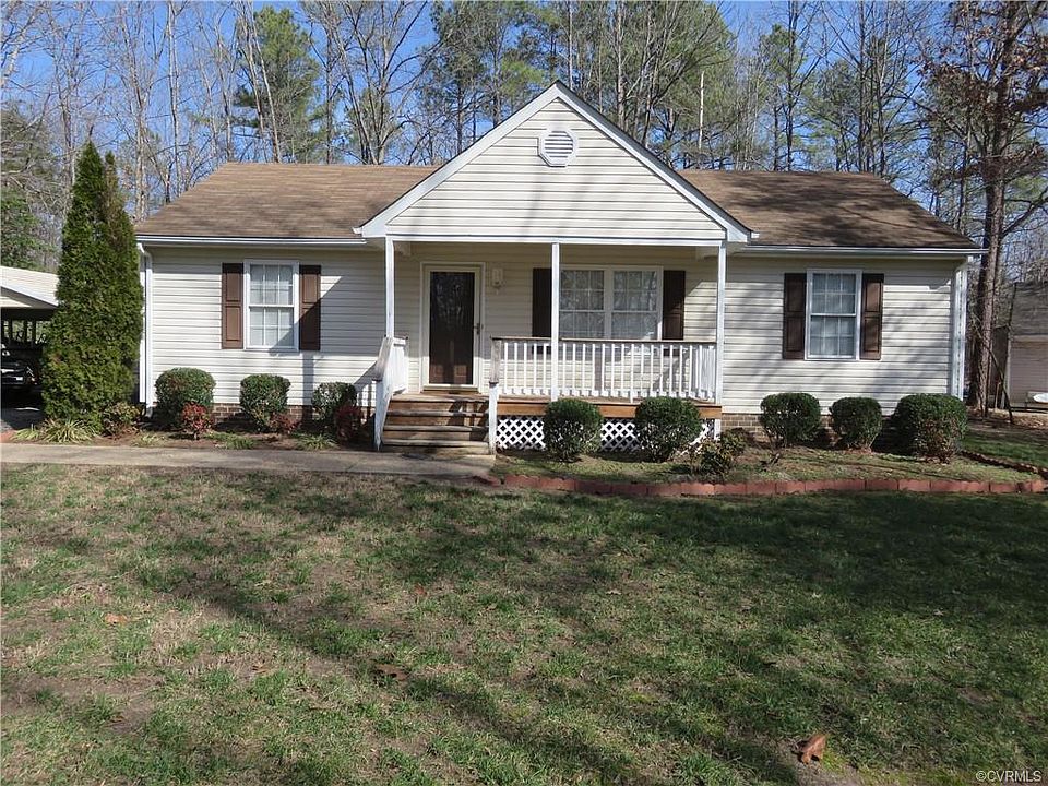 Rancher with style and charm on a large lot in the Aylett area of King William County! A cathedral ceiling gives the living room a spacious feel and easy flow is enjoyed from there into the dining area. This popular split floor plan offers the master suite at one end of the house and the other two bedrooms and bath at the other end. The galley kitchen features granite countertops and black appliances which all stay! A walk-out bay window enhances the dining area. You'll appreciate the master suite with its walk-in closet and full master bath! There's a utility/ laundry room too. There, you'll find washer and dryer hookups along with a water purification system! Outside, there's an inviting front porch, a two car carport and a storage shed. A new heat pump/ central air system was installed in recent years. And what a great location! Enjoy rural living in a neighborhood well positioned between Richmond and Tappahannock offering easy access to both. Dining, gas and groceries are all close by at Central Garage (Rt 30 and Rt 360 intersection). Come put your personal touches on this house and make it your home! One year warranty too!