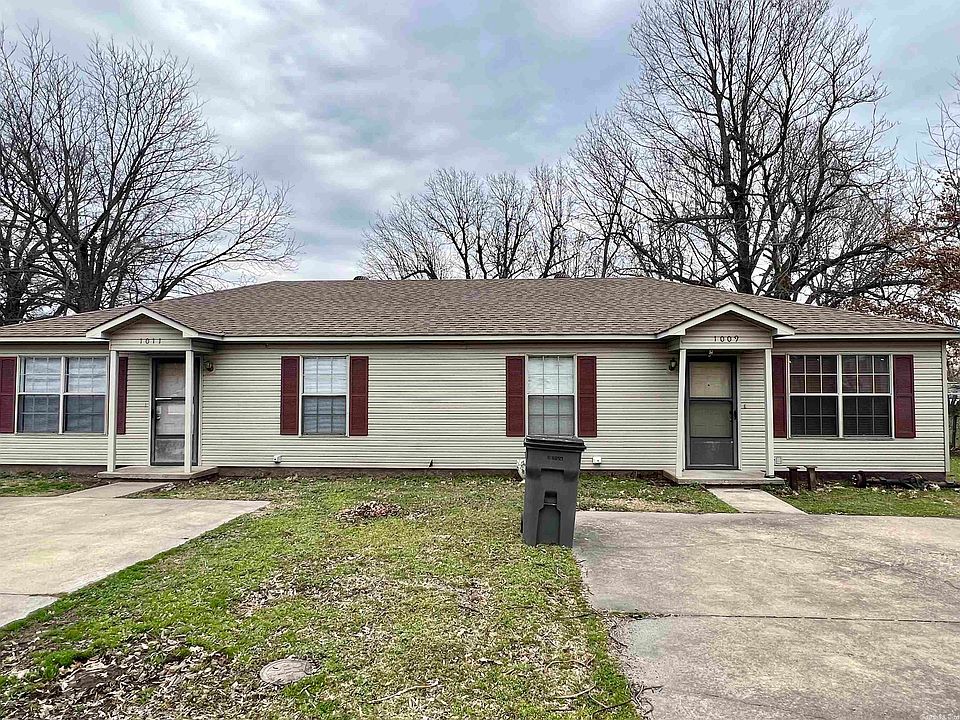 Charming duplex, each with 2 bedrooms and 1 bath. The kitchen/dining/living areas are all open, and the bathroom with laundry area is dividing the two bedrooms. A site-built storage building is in the backyard with each unit getting access to one half the storage building. Parking for two is located in the front of each unit.