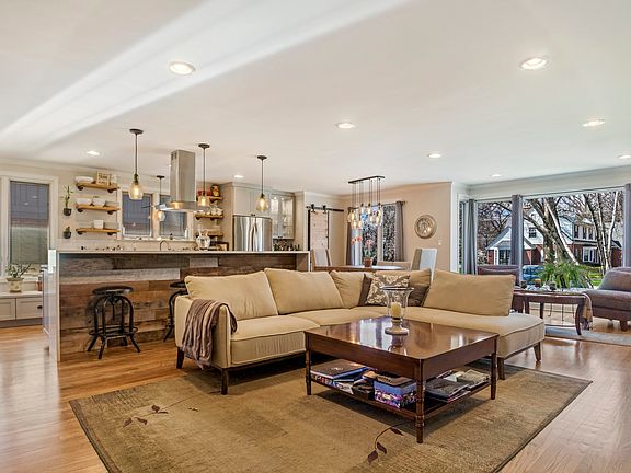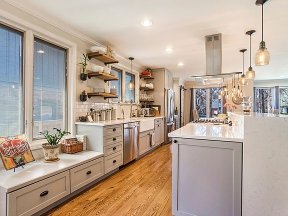 Completely remodeled raised ranch with open floor plan for today's lifestyle. Grey kitchen with open shelving, large center island with waterfall counter tops and barn door pantry. Large front window with western exposure lets in amazing natural light. Fireplace with salvaged timber mantel to match the weathered wood built into the island. Beautiful new bathrooms, lots of additional living space in the finished basement. Enclosed remodeled porch offers a great space for office or quiet relaxation. Fenced spacious backyard with brick patio, Pella windows and new sewer line to street. 1.5 garage, abundant storage including cedar closet and huge attic. Exemplary elementary, middle and high schools are within easy walking. Ideal location provides quick access to I-90, I-294 and Metro/Metra rail lines