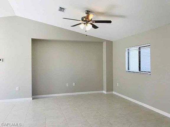 Brand-new, never-been-lived-in 2018 Construction Spaciousness, comfort and convenience. This beautiful NEW home is outfitted with a cathedral ceiling, tile flooring in the main and wet areas, stainless-steel kitchen appliances, granite countertops, upgraded cabinetry, recessed lighting, ample pantry and bedroom closet space, a walk-in master closet, a dual-basin granite master vanity, no-step master walk-in shower, shower-tub combo guest bath, and four bedrooms. Enjoy evenings out of doors under an open roofed lanai. Make this home YOUR home. Southwest Florida theres no place like home!