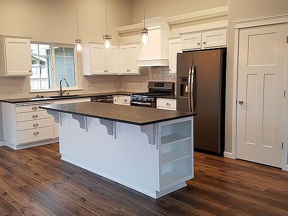- Pantry, Shower/Tub Combo, Double Vanity, Linen Closet, Walk-In Closet(s), Ceiling Fan(s), Kitchen Island, Vaulted Ceiling(s), Granite Counters, Open Floorplan