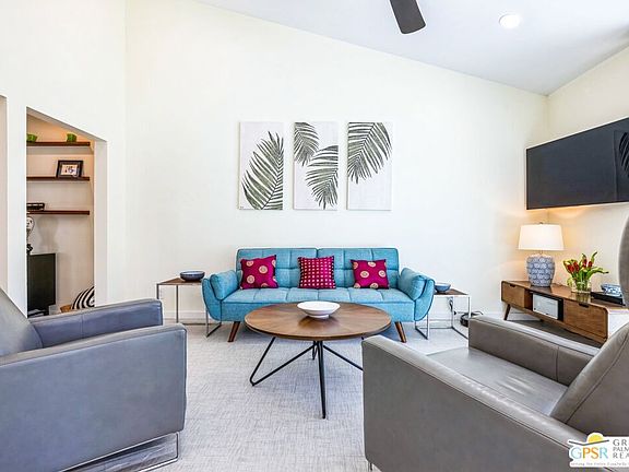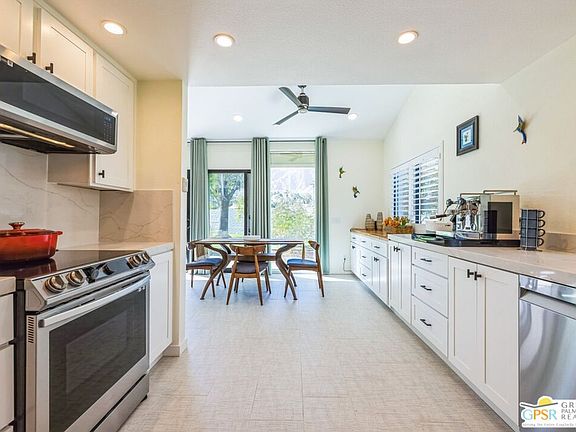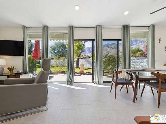 Stylish Palm Springs Living with Stunning Mountain Views! Discover the perfect desert retreat in the heart of Palm Springs! This stunning 3-bedroom, 2-bathroom home offers 1,576 square feet of beautifully updated living space, surrounded by lush greenery and breathtaking mountain vistas. Located in the sought-after Sunrise Villas community, this home blends modern elegance with the serenity of resort-style living. Owner spared no expense when thoughtfully renovating the entire home ! Make your way inside to soaring vaulted ceilings, a light-filled open floor plan, and exquisite details like recessed lighting, custom Italian tile floors, and stylish window shutters. The spacious living room and versatile bonus area provide ample space for entertaining or relaxing. The sleek glass doors provide an ultimate indoor/outdoor experience. The modern kitchen features new Samsung stainless steel appliances, elegant custom quartz countertops, mountain views from the kitchen windows and an adjacent cozy dining area also with expansive views to enjoy the picturesque outdoors. The bright and airy bedrooms include a primary suite with a private, spa-like bathroom boasting a double sink vanity and walk-in shower. Additional features include an in-home laundry area with LG stackable washer and dryer, attached 1 car garage for your convenience. Outside, the property offers a tranquil patio area perfect for alfresco dining and enjoying the scenic surroundings. Sunrise Villas provides an incredible array of amenities, including 8 pools, 3 spas, tennis courts, and pickleball courts, all nestled within beautifully maintained community grounds. With its unbeatable location close to markets, dining, and entertainment options, this Palm Springs gem is more than a home it's a lifestyle. Experience the ultimate in comfort, luxury, and convenience. Schedule your private tour today!