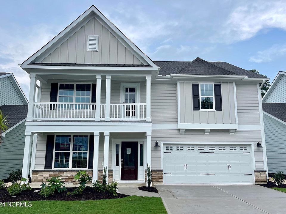 Located in the highly desirable Bradley Creek area, The Cottages at Bradley Creek is nestled among spectacular live oak trees in the pocket parks and five minutes to Wrightsville Beach, the Intracoastal Waterway and all of the best shopping and dining in Wilmington, NC. The Palmer is a two-story home with double porches featuring three bedrooms and two- and one-half baths including a butler's pantry, sunroom and private sitting room off primary suite plus a spacious loft upstairs. The large primary suite has a luxurious shower, double vanities, linen closet, water closet and dual closets plus the private sitting room perfect for a home office, workout room, or nursery. Two secondary bedrooms have walk-in closets, a full bath with double vanities, and laundry room convenient to all bedrooms. The formal dining room with coffered ceiling has access to the butler's pantry which goes through to the kitchen with an island and breakfast nook. The family room with fireplace overlooks kitchen and sunroom. The kitchen features quartz counters, large island, gourmet layout with gas range, wall mounted oven and microwave, white farmhouse sink, under cabinet lighting and walk in pantry. Light filled sunroom has panoramic view of back yard. Outside enjoy fully sodded front & back yards with irrigation. Take advantage of final opportunities for a Palmer plan! Home is under construction. *Photos not of actual home. Designer features may be shown. Finishes will vary. *