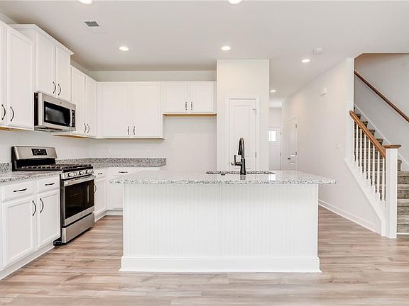 Carefully planned community with attention to street layout, home placement, nature surrounds and ready to enjoy now amenities - including green spaces, clubhouse, pool, gym and parks. Luxury living with exterior maintenance and insurance included. All designer interior finishes with 9ft ceilings and 1300 sf living space for your grab and go lifestyle plus finished garage and ample overflow parking. Dreamy kitchen with tons of cabinet and countertop space, center island, quartz countertops, SS appliances, open to large living room complete with LVP flooring recess lighting and HDMI connections. Private backyard patio backs to lush lawn with treed backdrop to enjoy peaceful outdoor living. Second level has 3 spacious bedrooms, laundry and pull down attic stair. CCA when using pref. lender & attorney.