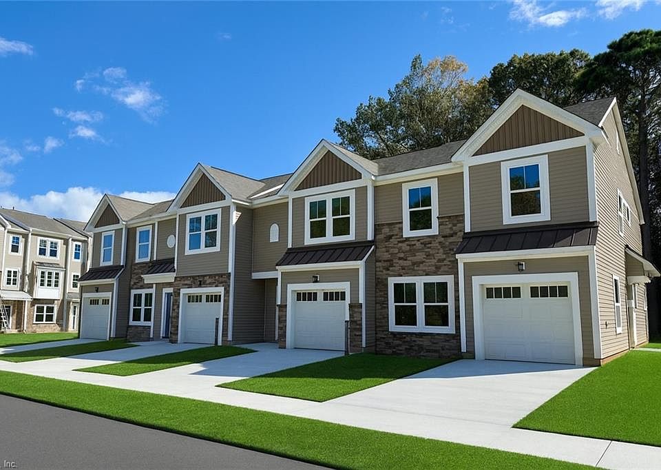 2025 Delivery! Luxury style townhome/condo in popular Northern Suffolk- great schools, fast and easy interstate access and only 3 miles to convenient Harbourview. New construction tucked back alongside peaceful Bennett's Creek protected area with impressive 105 acres of landscaped greens offering scenic the community along with doggie park, children's playground, 5000 sq ft clubhouse, equipped gym, resort style pool, outdoor firepit and grilling! Upgraded ext and int finishes included with all homes. Designed with casual & convenient living, dining & outdoor entertaining on the 1st floor. The kitchen features upgraded cabinets & stainless appliances all wide open to family room with plenty of windows for natural light plus a back patio. LVP flooring the entire 1st level. The primary features a cathedral ceiling & walk-in closet & a spacious primary bath