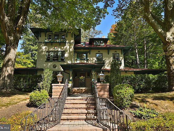 Introducing 1009 Sharpless Rd, a stunning Craftsman/Mission-style masterpiece designed in 1908 by renowned Philadelphia architect E. Allen Wilson. This historic home, originally owned by Mr. F. Leighton Kramer—founder of Kramer Woodworking, a company known for its unique architectural wood elements—beautifully blends timeless architectural charm with modern conveniences. Set on a beautifully landscaped half-acre, this remarkable residence meticulously preserved by the owner retains its original design details, from intricate woodwork to decorative features, all while offering modern upgrades such as custom replacement windows, central air, and an updated kitchen. As you approach, you’ll be greeted by a grand front terrace and striking decorative balconies that enhance the home's impressive façade. Step inside through a charming Dutch door into the vestibule, where quarter-sawn white oak walls and a leaded glass oak door set the tone for the home's exquisite craftsmanship. The elegant foyer with its dramatic beamed ceiling, white oak panels, hardwood floor and stairway make for a grand entrance. The living room exudes warmth and sophistication with its decorative beamed ceilings, recessed arch bookcases, a marble fireplace, complete with an attractive mantel and original iron screen doors. French doors with 16 glass panels open to a sunlit sunroom, featuring coffered ceilings, tiled floors, built-in glass shelving, and access to both the front and rear gardens. To the left of the foyer, you'll find an inviting family room with large windows, a decorative fireplace, and doors leading to a lovely screened-in porch. The formal dining room, perfect for hosting, connects to the kitchen through a traditional butler’s pantry. The fully modernized kitchen boasts elegant white cabinetry, granite countertops, stainless steel appliances, and a designer tile backsplash. Adjacent to the kitchen is a cozy breakfast nook, featuring a picture window and access to the rear yard. The second stairway connects the kitchen and second floor for easy access and convenience. Ascend the beautifully crafted staircase to the second floor, where a spacious landing greets you. The upper-level houses four generously sized bedrooms, including a luxurious primary suite with an updated ensuite bathroom featuring a walk-in shower and soaking tub. Large windows fill every room with natural light and beautiful views. A newly updated hall bath completes this level. The third floor features a large bright room which can be used as a playroom, office or a seventh bedroom. Two additional smaller bedrooms, a hall bath and a large walk in cedar closet and additional storage complete the third floor. The outdoor space is equally impressive, with two brick patios perfect for entertaining, a pergola, a shed and a long driveway leading to a detached two-car garage with a second-floor storage area. Every detail of 1009 Sharpless Rd has been thoughtfully preserved and updated, offering a rare blend of historic elegance and modern living. This home is a true architectural treasure, inviting you to experience the grace and grandeur of a bygone era. The property is located within a 5 minutes walk to the Melrose Park commuter train station allowing for a short train ride into center City.