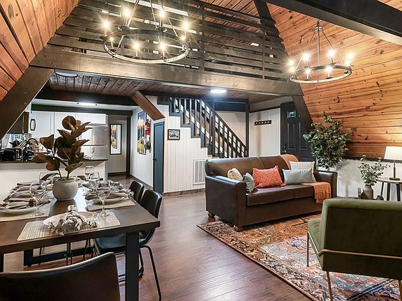 Nestled amidst the tranquil beauty of Chalet Village, this charming, renovated 2-bedroom, 2-full bath A-frame cabin is the epitome of mountain living at its finest. With a proven track record as a sought-after short-term rental, this gem offers not just a home, but an incredible investment opportunity. Imagine waking up to the scent of pine in the air in this wooded cabin and the promise of adventure at your doorstep. Stepping inside, you'll find a meticulously designed interior that effortlessly combines rustic charm with modern comfort. The cabin comes fully furnished, sparing no detail in ensuring your immediate enjoyment. Many enhancements have been added to the home. Ie: Interior/exterior have been painted, New flooring on 1st floor, renovated bathrooms, reconfigured kitchen with new cabinets and granite countertops, new appliances, new washer/dryer, new air purifier, new light fixtures, and more! The thoughtfully curated furnishings create cozy spaces for relaxation and entertainment. Beyond its captivating charm, this A-frame cabin offers a lucrative opportunity. With a strong rental history, you can continue to reap the rewards of this investment while creating cherished memories of your own. Whether you're seeking a permanent mountain retreat or a smart financial move, this cabin delivers on all fronts. This home is being self-managed and currently a successful active short term rental. From June 2022 - June 2023, this property has been paid out $89, 842.19. Check the Airbnb listing here! https://www.airbnb.com/rooms/649488122815638182?guests=1&adults=1&s=67&unique_share_id=2b881493-54b1-4067-aa99-e8551cde24e5