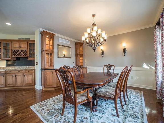 Custom built Provincial w/4 BR & 4.5 BA on level double lot w/beautiful views. High ceilings on 1st fl & hardwood fl on 1st & 2nd fl. Two-sty entry w/grand staircase, palladium wndw & stunning chandelier. 2-sty great room w/stone FP opens to eat-in kitchen. Beautiful maple cabinetry, granite counters, center island w/pendant lighting in kitchen. Sliders open to concrete deck. 8'x6' pantry w/addtnl refrig & freezer. Elegant dining rm features wainscoting & built-in buffet & curio cabinets. 1st fl office w/french doors. MBR suite w/trayed cathedral ceiling & balcony. MBA features Italian tile tub surround & walk-in shower. Guest BR features full bath plus 2 additional BRs. Huge hall bath w/double bowl vanity. Spacious closets & ceiling fans w/light in all BRs. Huge GR in basement w/kitchenette & full BA. Sliders open to grnd level patio. Professionally landscaped yard & sprinkler system & exterior lighting. 3-car attached garage w/level drvwy.