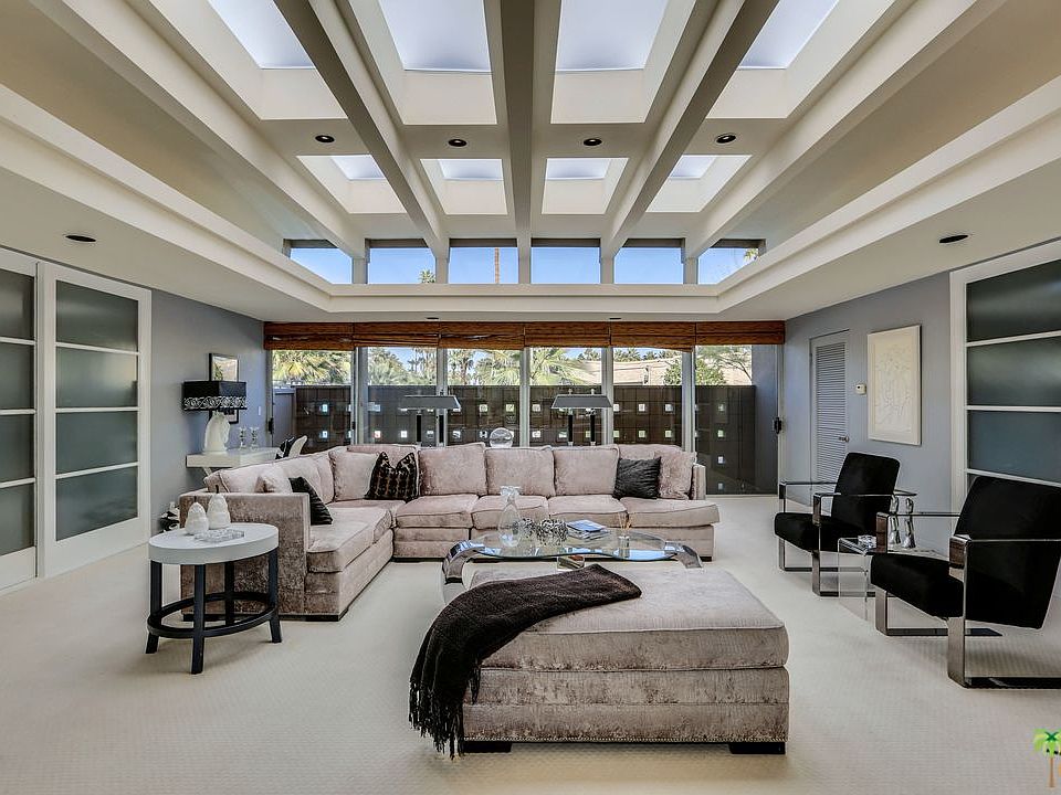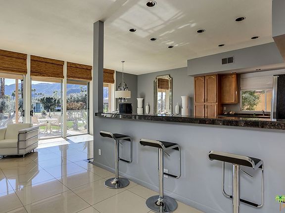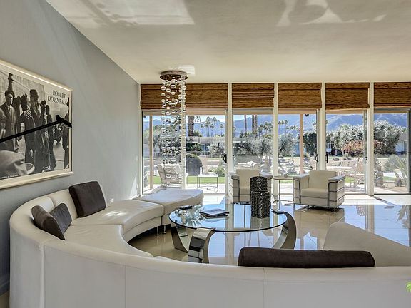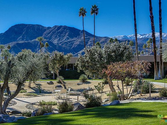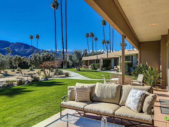 Mid-century Modern architecture with expansive mountain and poolside views. Original open atrium space has been enclosed as a large family room with a ceiling of glass and wood beams designed for indoor/outdoor living. At 3,200 sf, this 3 bedroom 2.5 bath spacious, natural light filled home IS the desert lifestyle - whether entertaining or enjoying the quiet of this low density, special community. Constructed in 1964 and remodeled to compliment the original architecture. Gourmet , open kitchen with stainless appliances and granite counter tops. A 15 minute drive to downtown Palm Springs enhances this amazing home, location and value. Very well located within the complex away from any traffic noise. Very private and serene, steps to a large pool and secondary pool and spa. No land lease.