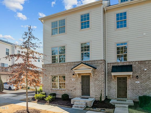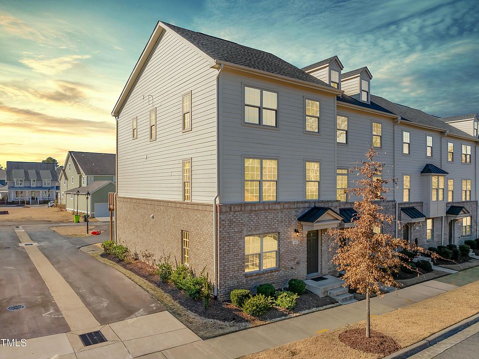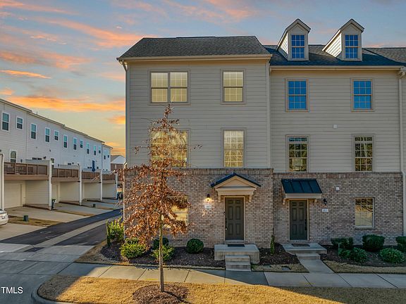 Welcome to this meticulously maintained & tastefully updated end unit townhome, nestled in the heart of the sought-after 751 South neighborhood in southern Durham. This stunning three-level residence offers a perfect blend of modern luxury & convenience with tree lined views from the front of the home and sunset views from the back deck. As you arrive, you'll be greeted by a versatile first floor featuring a spacious flex space ideal for an entry level guest suite, office or additional living room with a full adjacent bathroom, On the main level you will find durable LVP floors, custom roller shades, and fresh paint, creating a warm and inviting atmosphere while crown molding in the dining room provides a sense of elegance. The heart of the home is the beautiful and timeless kitchen, complete with quartz countertops, stainless steel appliances, gas range, tile backsplash, under cabinet lighting and a deeo walk in pantry. This epicenter overlooks the spacious living room which leads to an expansive deck with a retractable awning providing that perfect cover from the elements. electric retractable awning for the afternoon shade. Upstairs, you'll find the owner's suite, a true sanctuary. It features a large soaking tub, perfect for unwinding after a long day, as well as a walk-in shower for your daily routine. Two additional well-appointed bedrooms on this level offer plenty of room for family or guests and all with Minka Aire ceiling fans. The 751 South community enhances the lifestyle with a unique streetscape, numerous pocket parks, multiple playgrounds, a gym, a resort-style pool, and a clubhouse—making this home and neighborhood the perfect combination of comfort, style, and convenience. And when you couple the neighborhood amenities and feel with the proximity to Southpoint Mall, RTP, RDU, Downtown Durham, UNC and countless shops and restaurants, you have the making of a truly special place to call home.