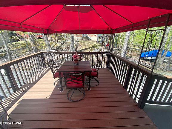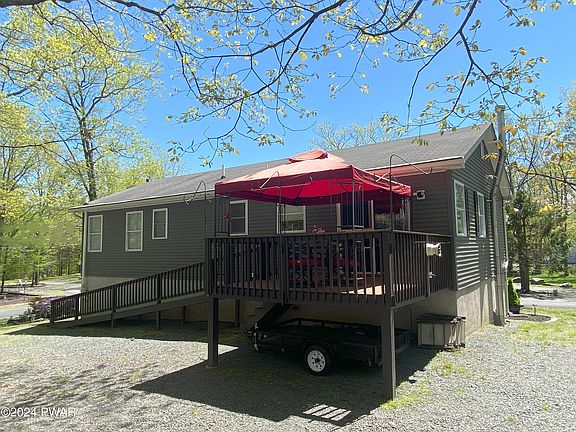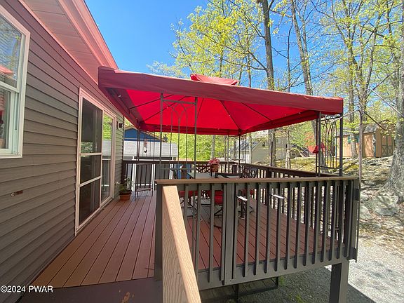 Welcome to 1009 Tennis Lane! As the street name implies, this home is located on a quiet cul-de-sac close to Tennis Courts. The property has been impeccably maintained with Trex composite decking, a custom-built shed, and landscaping on the outside & equally impressive on the inside with many new appliances and a large primary bedroom with an en-suite bathroom. Much of the quality furniture is included with the purchase of the home providing automatic added value. As part of the WLE community, you have privileges to access 2 private lakes, beaches, 2 outdoor pools, an indoor pool & gym, lodges & game room as well as access to the private community marina on the big lake, Lake Wallenpaupack! Sewer, water, and trash are part of the low community dues.