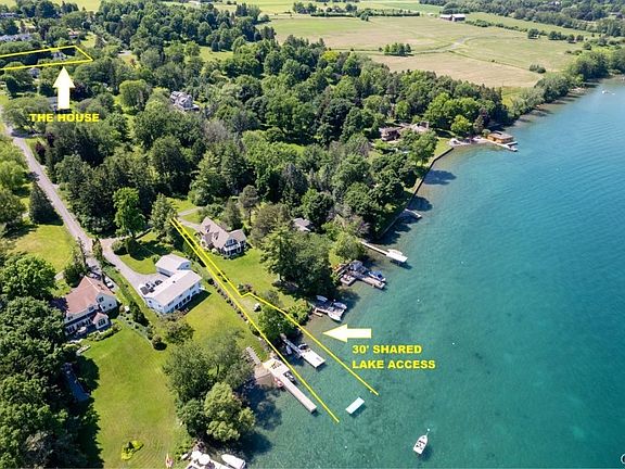 Your best life begins on “The Lane”, one of Skaneateles’ most coveted neighborhoods on the lake. Offering privacy, 30' of shared lakefront access and a convenient location at the edge of Skaneateles village, this meticulous Cape Cod has the space you need with the location you desire. Private setting on close to 1 acre of land with over 3500 square feet of living space (including a bonus room and partially finished walk-out basement). Features include a beautifully renovated eat-in kitchen, convenient first floor primary bedroom with attached bathroom, 2 woodburning fireplaces in both the living room and family room, 3-season room with a wall of light-filled windows, two patios, ample storage, and attached 2 car garage. The second level has two large bedrooms, a full bathroom, hall storage closets and a bonus room currently used as a 4th bedroom. The tidy basement offers storage space, built in cabinetry, laundry & a living area that walks out to a stone patio. This home checks all of the boxes: Spacious. Well-maintained. Move-in ready. Highly desired location. Top-rated schools. Lake access on one of the purest lakes in the country. SELLER WILL REVIEW ALL OFFERS 7/5 5:00PM, EDT.