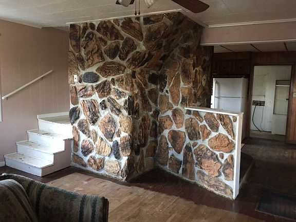 Ideal home for investor or first time home buyer - property has 2 lots and additional structures on property could fix up and rent all 3 propertiesHome features large front porch - great view! Very nice fenced in yard for kids or animals. Stonework with flue for cozy woodstove in living room . Front half of roof is newer and new metal flashing. Master Bedroom on main level. Some hardwood flooring under carpet. Built-in cabinet in dining area. (2nd bedroom has no closet)