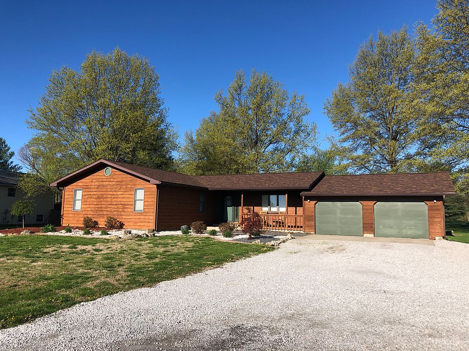 Updates throughout in this well maintained 3BD/2BTH ranch home on .5 acre in Triad School District. Expect to be impressed! The covered front porch welcomes you to the foyer with hardwood floors and sizable living room with newer carpeting. Kitchen includes SS appliances, ceramic tile, granite counters and lots of cabinets! Adjacent dining room with hardwood floors leads you to the oversized deck with patio for easy entertaining. Fresh newer carpeting in all bedrooms and master with own master bathroom. Washer and dryer stay in main floor laundry. Mature trees, two car garage, extra parking and level lot make this a must see!