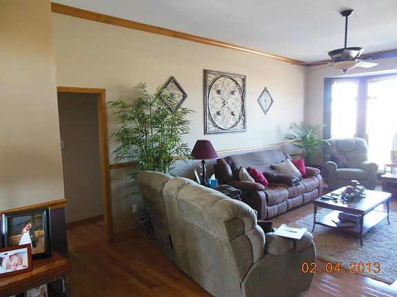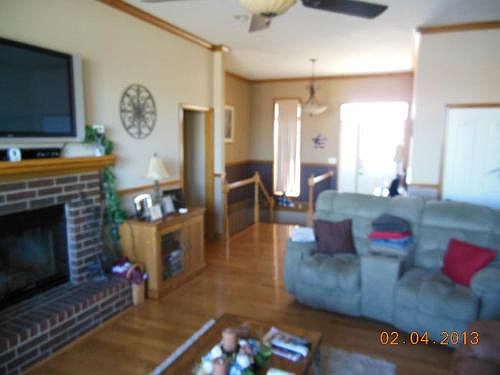 Beautiful home, large kitchen w/tile and hardwood flooring, granite tiled counter tops and tiled back splash. All custom oak cabinets, built in desk. Large 2level deck with covered grilling pavillion, above ground pool. Large living room with 10 foot ceiling, fireplace and hardwood floors. Large master bedroom and bath with whirlpool tub. Finished family room in basement with full bath . Walk out basement with 2 car garage below as well as over sized 2 car garage on main level. Recent siding and exterior fixture updates. Large lot with privacy fence. Lot includes part of pond behind house. Keyless entry.