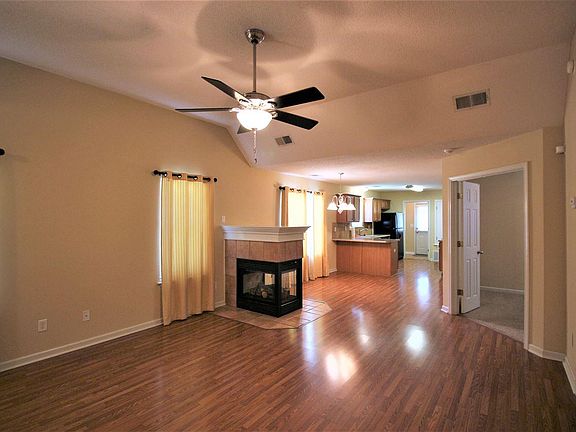 Such a special and inviting home! Great starter home in a gated community. This super cute home features three sizable bedrooms, two full baths, master suite with walk-in closet, luxury master bath w/ jetted tub, spacious den, two sided fireplace, cozy breakfast area, functional eat-in kitchen with breakfast bar, laundry room, neutral colors through out home, wood floors, tons of cabinets in kitchen, vaulted ceilings, and MUCH more! Private backyard offers a patio and green space for the family!