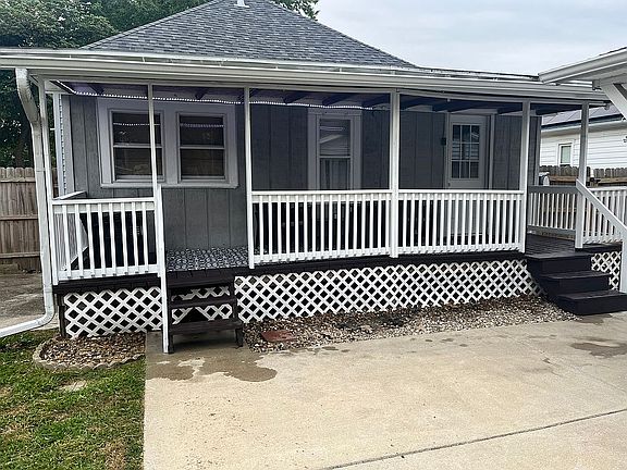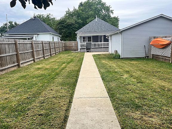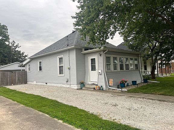 2 bedroom 1 bath home with new architectural roof and siding in 2019. Bathroom completely remodeled to the studs with new tub/shower, vanity and DuraCermaic flooring in 2020. High efficiency central air and furnace. New flooring in kitchen and utility room. Large utility room with washer and dryer hookup on the main level. New 2 car insulated garage door and opener installed in 2020 including new walk-in door. Garage has a large workbench with many electrical outlets. Garage is insulated and finished. Nice covered back deck with new concrete patio and walkway to the alley. Privacy fence and 6x6 garden shed added in 2021. Enclosed front porch / sunroom with many windows.