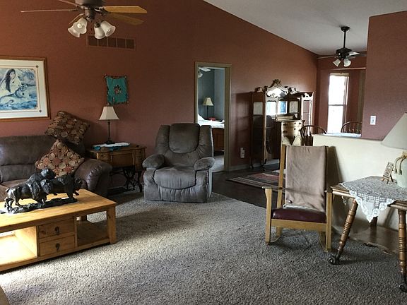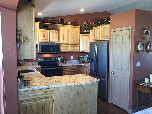 Wonderful ranch home on 1.05 acres. 3 bedroojms, 2 baths and open kitchen, living room and dining area. French doors off dining area lead to large back yard protected by trees. Maintenance free front yard with xeriscaped landscaping and front courtyard for those warm evenings. 2017 new custom Hickory cabinet kitchen with all new slate stainless appliances included, granite countertops, canned lighting and a pantry. New window coverings, 5 ceiling fans, central air and cathedral ceilings. New master bath in 2018. Unfinished basement is ready for your own design, plumbed and ready for 3rd bath. New Cleary pole building 24x48 has RV garage door in front plus 8x7 door in rear. Also built in 2018 a greenhouse/she shed 10x16, several raised garden beautiful beds, fruit trees, grape vines, raspberries, and asparagus.