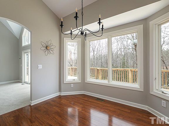 Updated Custom Contemporary Home near Falls Lake. The convenience of being close to everything with the rare privacy of 3+ ACRES. Enjoy the natural views from the expansive DECK and SCREENED PORCH. New Carpet. Fresh Paint- Inside & Out! 1ST FLOOR MASTER SUITE. Large Bedrooms. Finished 1300 SF BASEMENT APARTMENT with Bedroom, Full Bath, Living Area, and Kitchenette. 1st floor FLEX ROOM with attached bath could be an additional Bedroom. Storage throughout the home. No HOA Dues and No City Taxes!