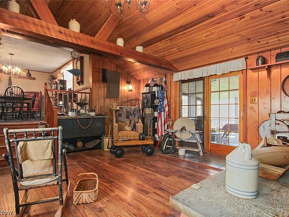 - Beamed Ceilings, Ceiling Fan(s), Chandelier, Cathedral Ceiling(s), Eat-in Kitchen, High Ceilings, In-Law Floorplan, Recessed Lighting, Storage, Natural Woodwork